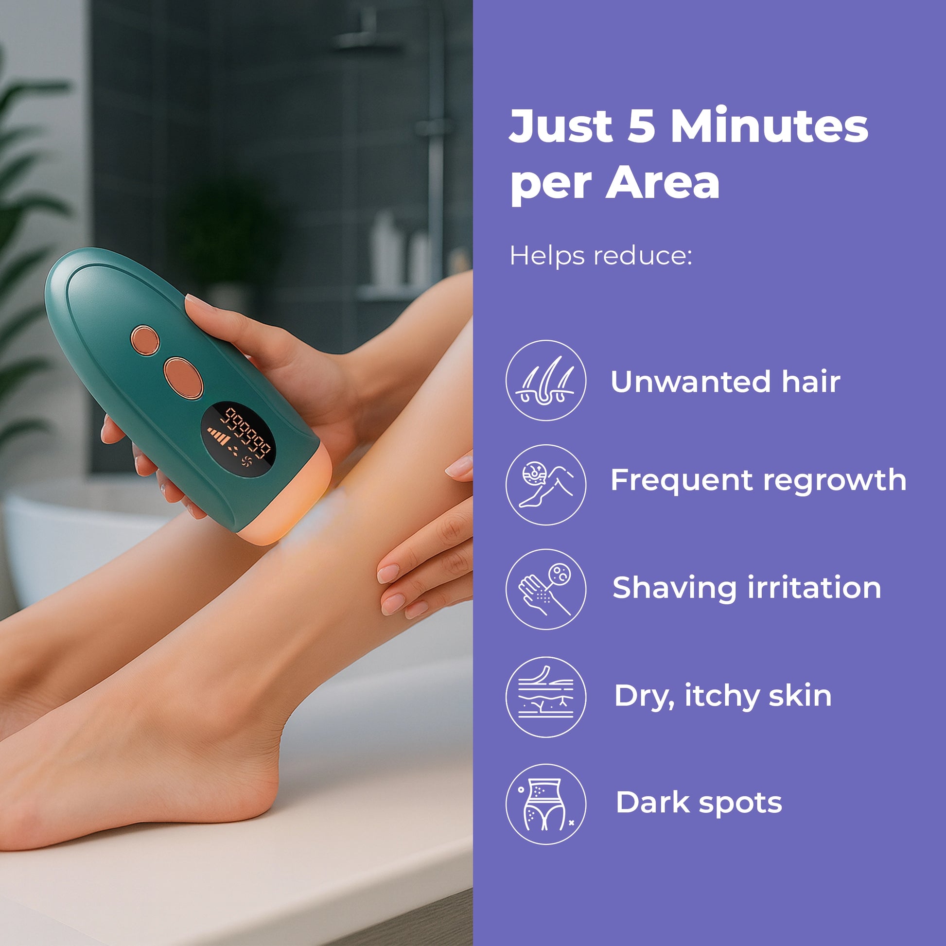 Just power it on and glide it over your skin — safe for legs, arms, underarms, face, and bikini line.