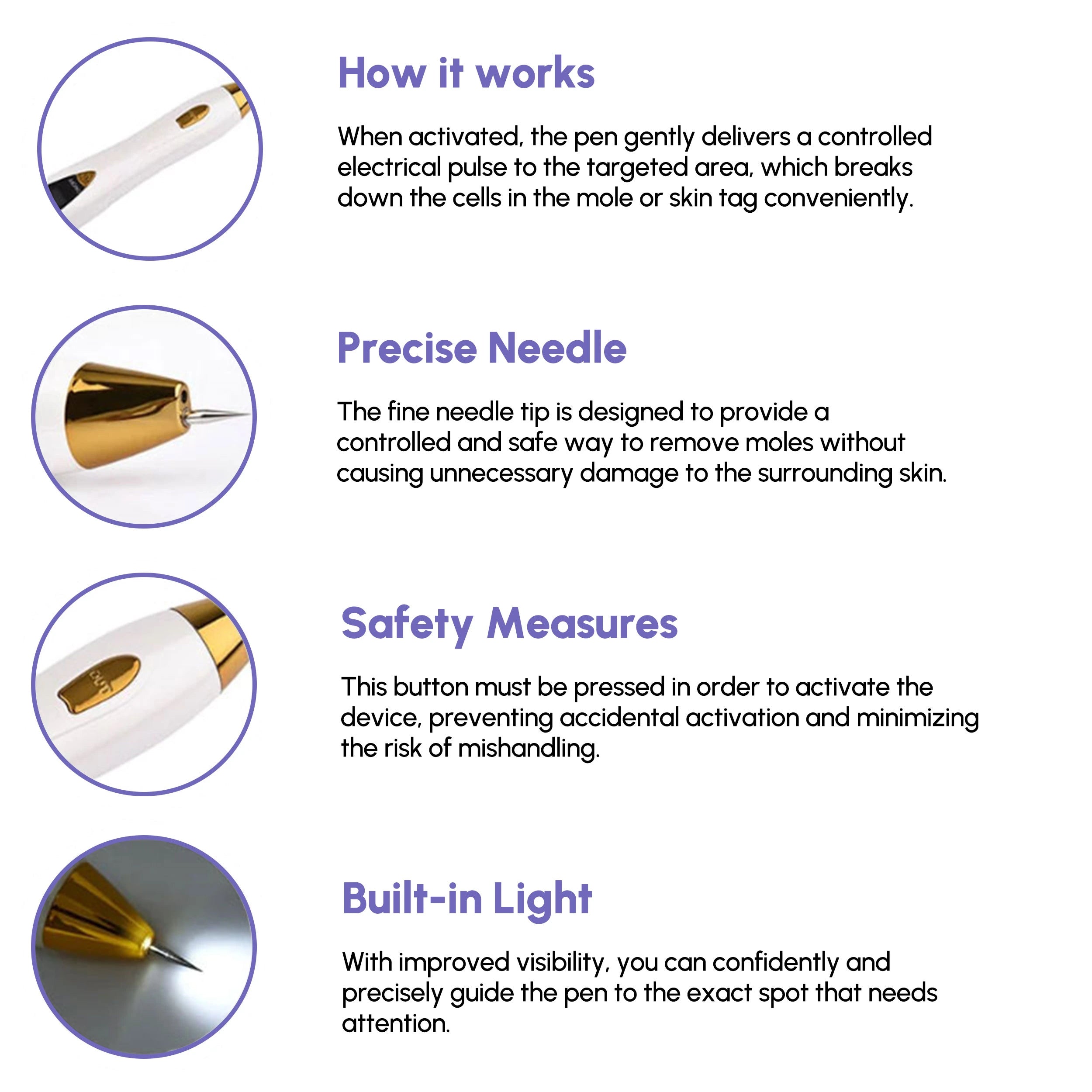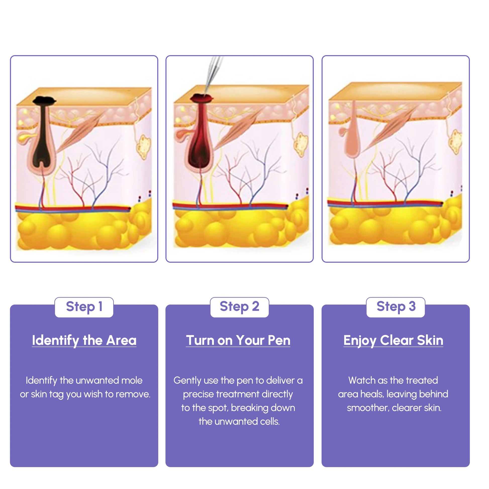 Our device is perfect for removing moles, skin tags, warts, age spots, blemishes, and even small tattoos. It’s a versatile solution for a variety of common skin concerns.